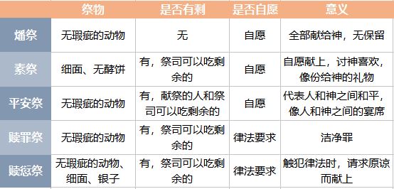 这五种献祭有些共同点——所有祭物都要求无瑕疵,五种献祭的目的都是讨神喜悦。
